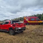 Veículo é arremessado em roça após colisão na BR-280, em Canoinhas.