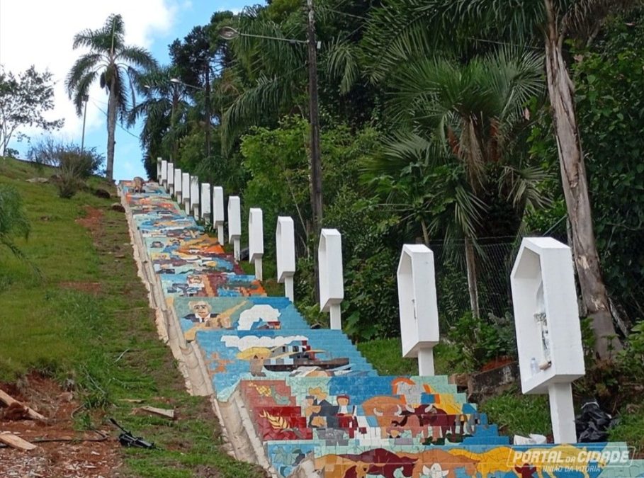Um dos destaques desta revitalização é a escadaria do Morro do Cristo, que se torna a maior do Brasil inteiramente em mosaico. Este projeto especial foi concebido, produzido e executado exclusivamente pela Prefeitura de União da Vitória, em parceria com a renomada mosaicista Ragli Rotta e o artista plástico Carlos Kussik. A escadaria, agora adornada com um belo e detalhado mosaico, promete ser uma atração imperdível e um marco artístico para a cidade.