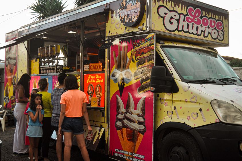 Os food trucks estarão presentes no evento com pizza, massas, churros, sorvetes e com smash burguer do Park food, além de chopp, caipirinha, água, refri e suco.